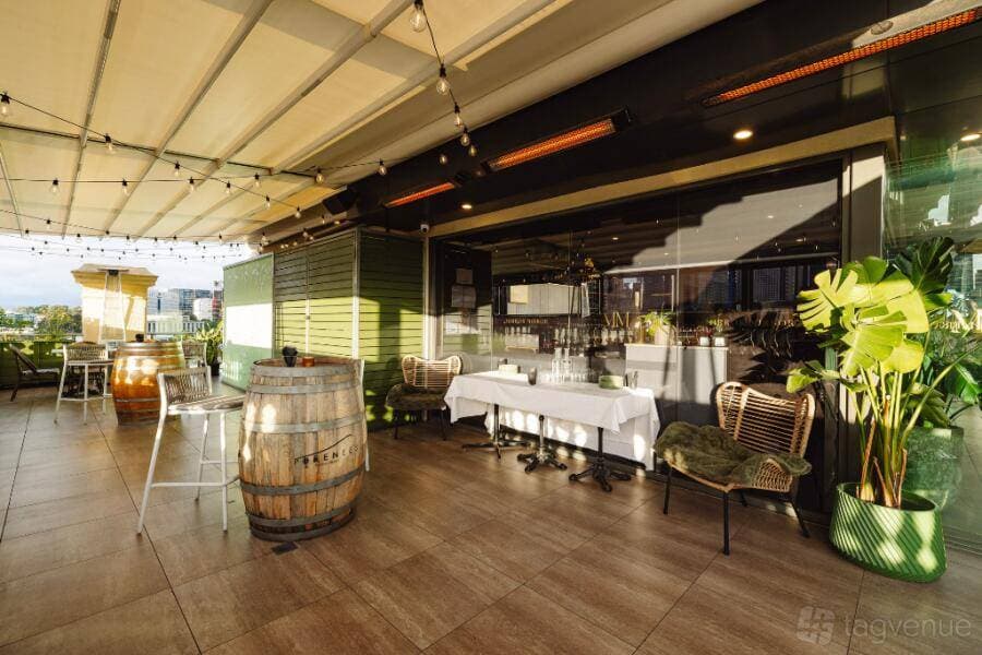 Die Exklusive Rooftop ist der größte Raum und bietet Platz für bis zu 150 stehende Gäste oder 75 sitzende Gäste. Er kombiniert den Panoramablick auf die Stadt mit freiliegenden Backsteinmauern und grünen Pflanzen und ist für größere Veranstaltungen geeignet. Ein Event-Planer steht zur Verfügung, um während des gesamten Planungsprozesses zu helfen.