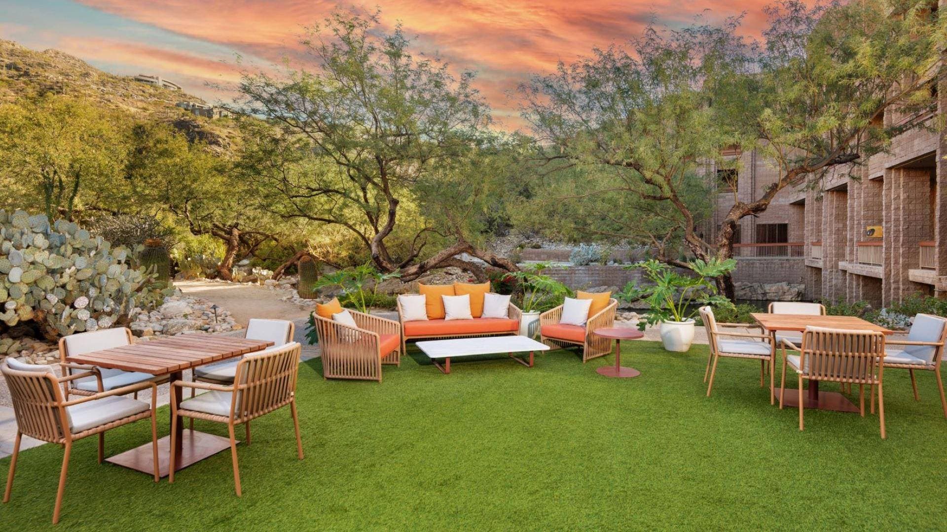 Das Loews Ventana Canyon Resort in Tucson bietet einen ikonischen Rückzugsort hoch oben in den Catalina Mountains und bietet atemberaubende Ausblicke auf die Landschaft der Sonoran-Wüste. Dieses Resort, das ursprünglich 1984 erbaut und 2024 renoviert wurde, wird als das erste umweltbewusst gestaltete Resort in Nordamerika gefeiert und hat seit über 40 Jahren den AAA Four Diamond-Status gehalten. Die Gäste erleben großzügige Eleganz in einem von 398 Zimmern, darunter 27 Suiten, die jeweils über private Balkone und übergroße Badewannen verfügen, die einen Blick auf die Wüstenberge und den sternenklaren Nachthimmel bieten. Die Architektur und das Design des Resorts harmonieren wunderbar mit der natürlichen Umgebung und schaffen eine ruhige und inspirierende Atmosphäre. Für Meetings und Veranstaltungen bietet das Resort 83.000 Quadratfuß vielseitigen Nutzraums, darunter 33 Tagungsräume, wie den großzügigen Kiva Ballroom mit 10.800 Quadratfuß und 37.000 Quadratfuß Ausstellungsfläche, ergänzt durch 46.000 Quadratfuß Außenbereiche. Das Essen ist ein Highlight mit preisgekrönten Optionen, darunter ein landesweit anerkanntes Top-100-Sonntagsbrunch, hauseigenen Restaurants und vollständigen Catering-Diensten. Wellness und Freizeit sind reichlich vorhanden mit zwei vom PGA-Designern Tom Fazio entworfenen Golfplätzen, beleuchteten Tennis- und Pickleball-Plätzen, zwei Swimmingpools, einem luxuriösen Lakeside Spa & Tennis Center, Fitnessmöglichkeiten, Wanderwegen, professionellem Sterngucken und Reitwegen. Dieses Resort ist ein erstklassiges Ziel für Entspannung, Firmenveranstaltungen und unvergessliche Feiern in einer atemberaubenden Berglandschaft.