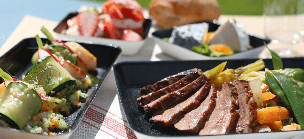 Une entrée, un plat et un dessert à choisir parmi la sélection du moment pour un minimum de 6 personnes. Cette prestation n’inclut pas la vaisselle ni les couverts.