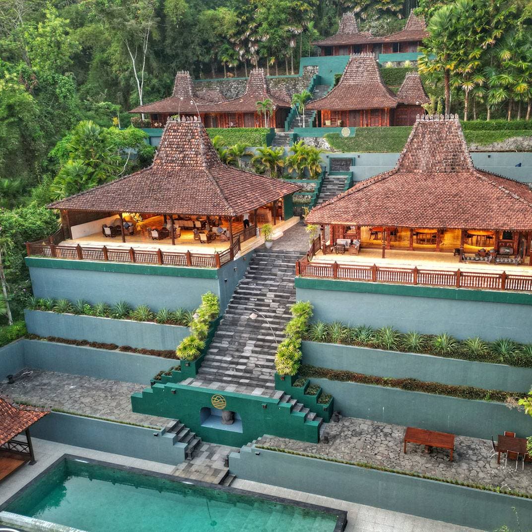 The resort is located near Borobudur, about 45 km from Adisucipto International Airport (JOG) in Yogyakarta and 90 km from Adi Sumarmo International Airport (SOC) in Solo. It is easily accessible by car or shuttle service from these airports, offering a peaceful retreat away from the bustle of city life.
