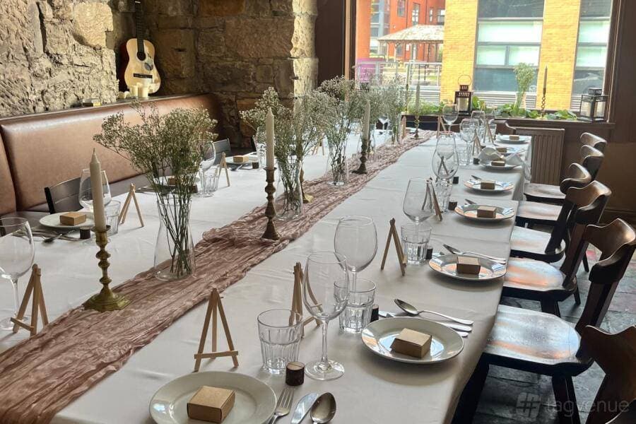 91B Private Venue is an urban event space located in the heart of Charing Cross, offering a distinctive rustic atmosphere defined by exposed brick and stone walls with woodwork accents. The venue spans multiple indoor and outdoor spaces suited to a range of private and social occasions.