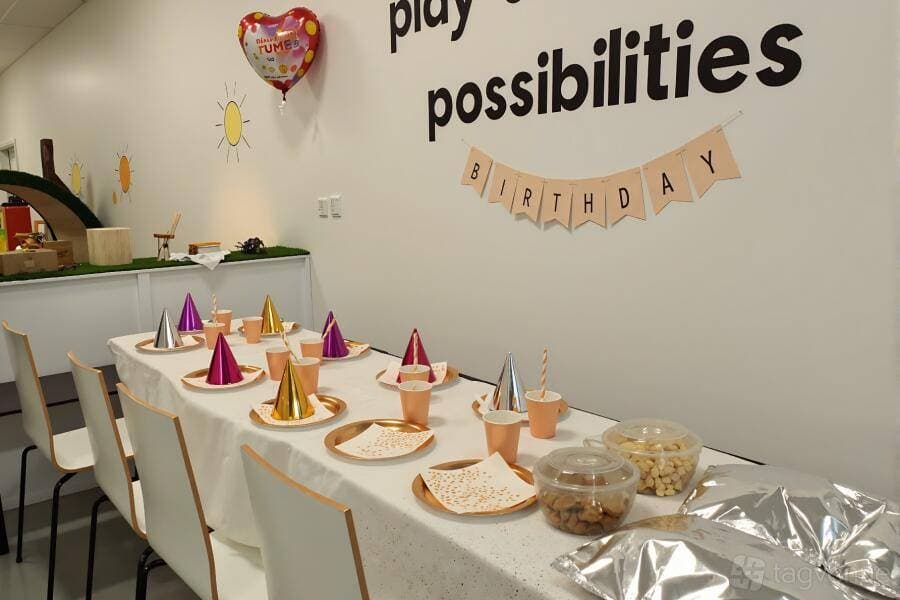 The Playground space accommodates up to 20 children and is suited to birthday parties as well as general playtime gatherings. Each booking includes tables with chairs and catering, making it a self-contained option for group events with young children.