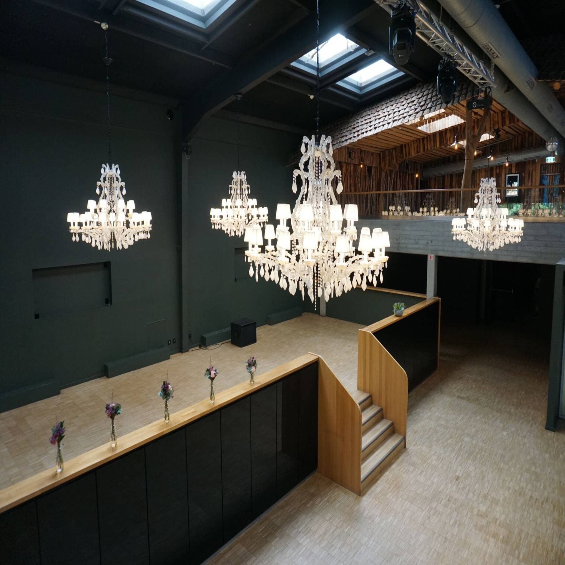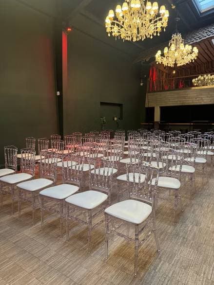 Located in the heart of the city, this event space is ideal for companies looking to host memorable events. With decor that combines modern and vintage elements, the friendly and warm atmosphere encourages interaction and creativity. Beautiful chandeliers and a touch of greenery create a unique ambiance, suitable for conferences, corporate evenings, and other professional gatherings. The space is flexible, allowing for different types of events, from seminars to receptions, while ensuring quality service. Thanks to its central location, it is easily accessible, providing a perfect setting to impress your clients and partners. The modern facilities and available audiovisual equipment guarantee a smooth and professional experience. Whether for an intimate event or a large meeting, this space adapts to your needs, making every occasion unforgettable.