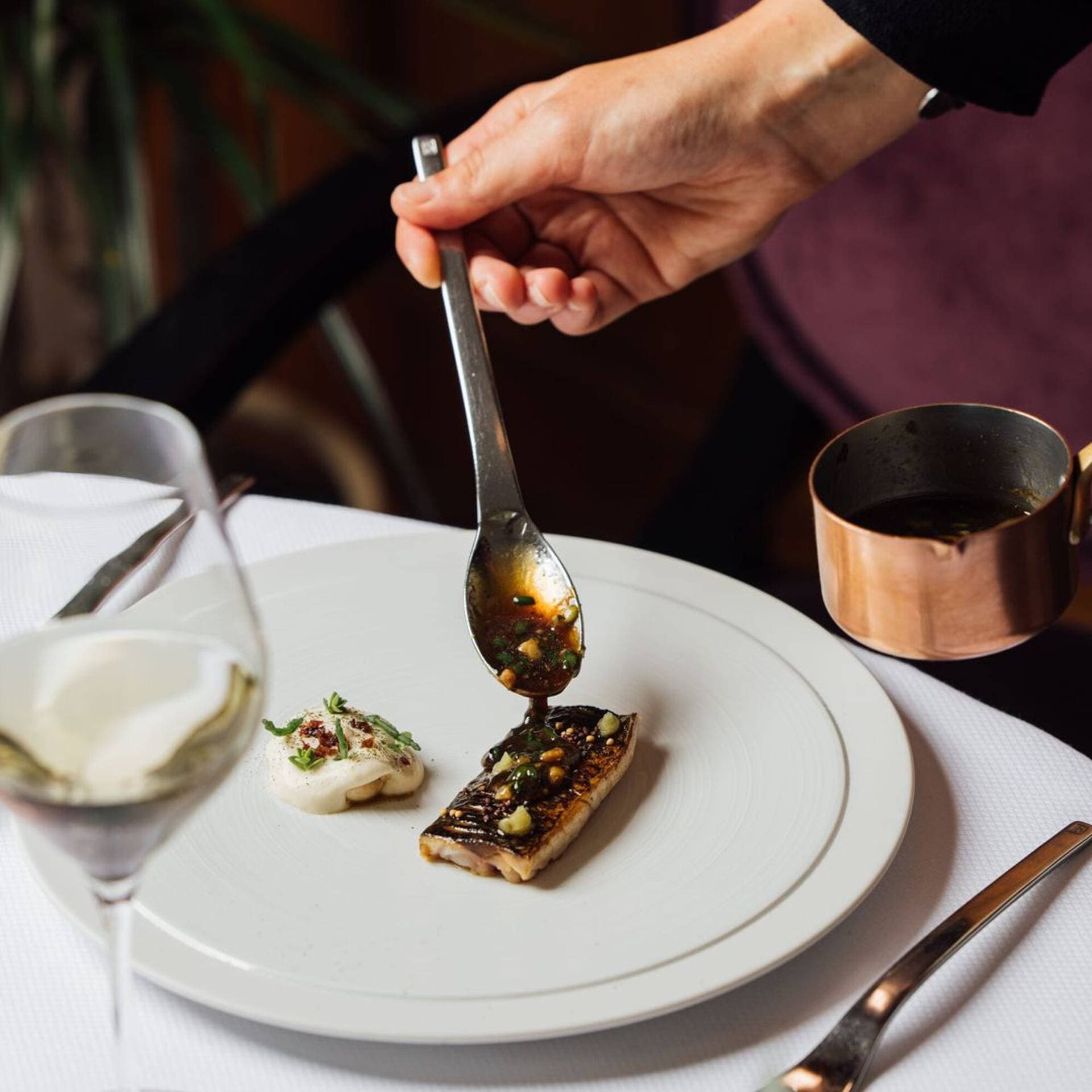 Specialties include inventive seasonal tasting dishes, shared plates, meat and fish preparations, and selections of grands crus paired with a thoughtfully curated wine offering.