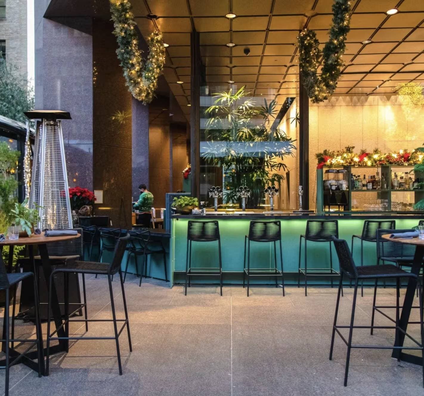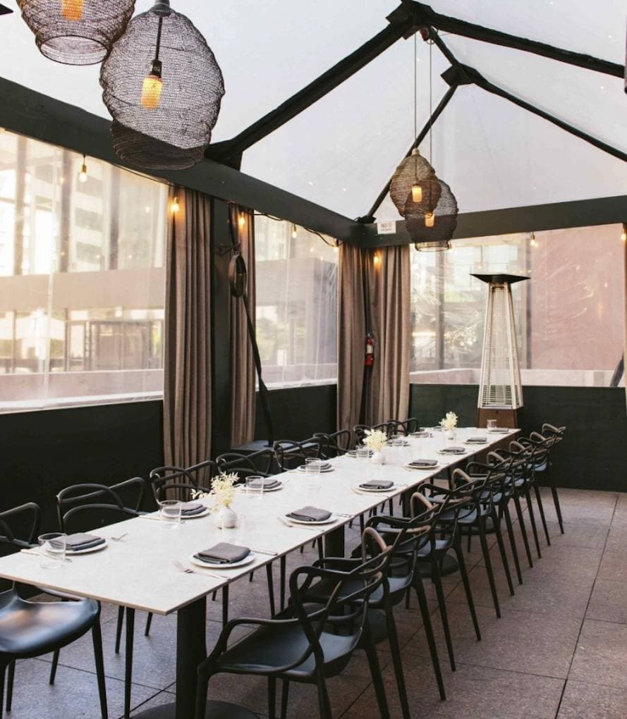 Discover a unique space dedicated to corporate events, offering an exceptional outdoor dining experience in the heart of the financial district. Located in the square of an iconic building, this urban oasis is both heated and covered, ensuring a pleasant setting throughout the year. Whether for a business lunch, a group outing, or a private executive dinner, this venue adapts to your needs. With a variety of catering options, it is possible to host receptions for groups of all sizes, from intimate dinners to seated events accommodating up to 190 guests. The refined atmosphere and superior service make this place a preferred choice for your professional meetings. Enjoy a seasonal menu to enhance your coffee breaks or business lunches. Whether you are planning a formal meeting or an informal event, this space will meet your expectations while providing an inspiring and welcoming atmosphere.