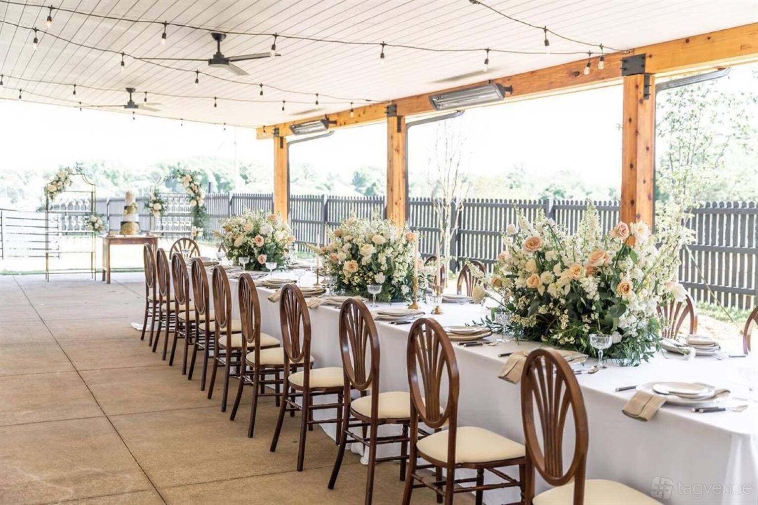 The Outdoor Patio is a 1,600 sq ft fully covered terrace with ceiling fans and electric heaters, making it suitable for year-round use. It accommodates up to 70 guests for seated dining and up to 100 for standing events. The patio can function as a standalone space or as a complement to the indoor area for cocktail hours or receptions.