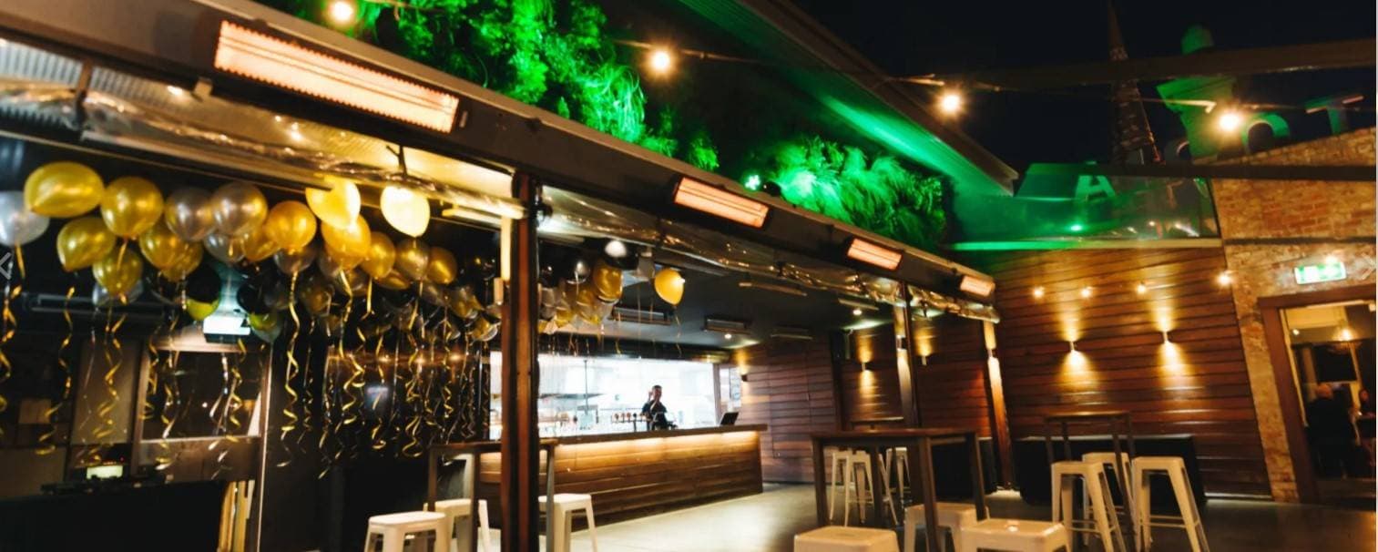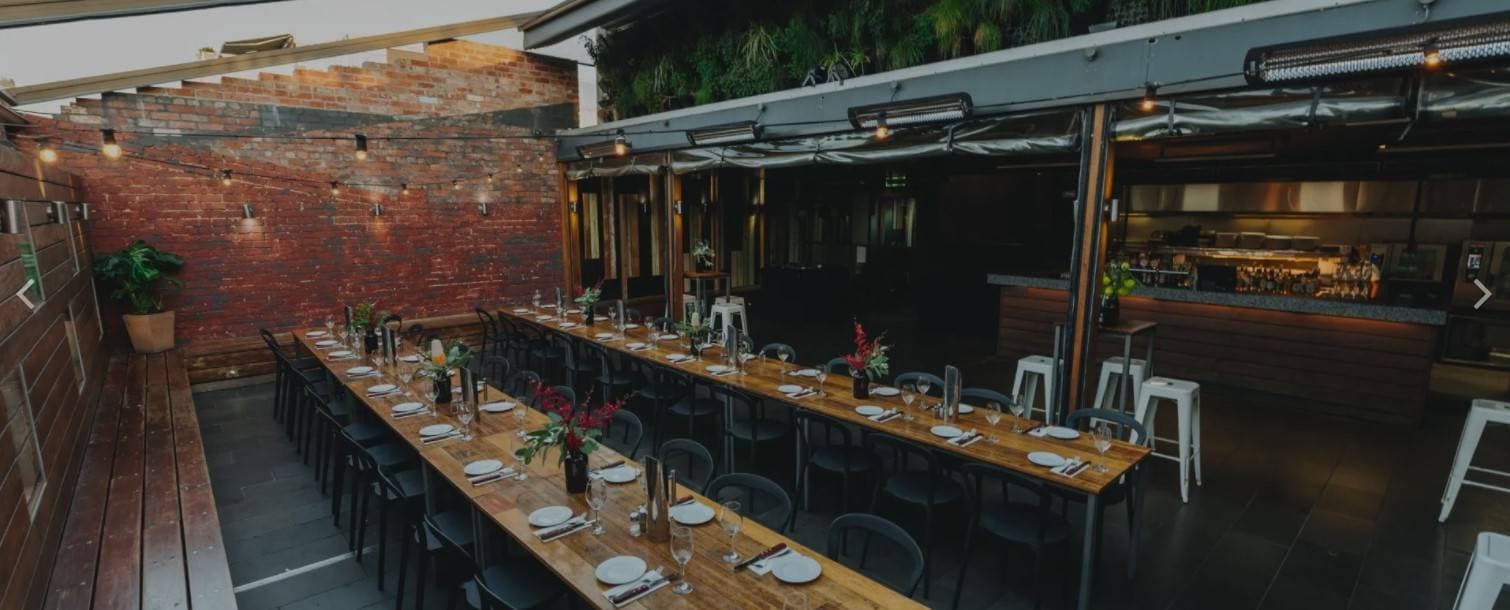 La Terraza es un espacio semi-exterior con un techo retráctil, lo que lo hace apropiado para eventos durante todo el año: abierto y fresco en verano, climatizado en invierno. Con un bar privado y un sistema de sonido dedicado, puede acomodar hasta 100 invitados para eventos sentados o hasta 80 en configuraciones estilo sala de juntas.