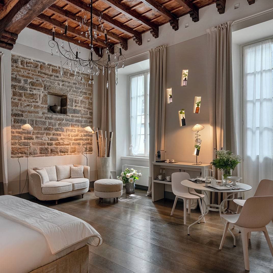 GombitHotel est un élégant hôtel-boutique alliant design moderne et riche charme historique de Bergame. Situé dans un ancien bâtiment adjacent à la Torre del Gombito datant du XIIIe siècle, l'hôtel offre un contraste frappant entre des intérieurs contemporains et des murs en pierre d'origine. Ses 15 chambres soigneusement conçues optimisent l'espace avec des agencements inventifs, créant une atmosphère épurée et accueillante. Les clients peuvent profiter d'une ambiance vivante agrémentée d'équipements tels qu'un bar, un salon et des services de conciergerie. Cet hôtel est idéal pour les voyageurs à la recherche d'un séjour sophistiqué mais sans prétention au cœur du nord de l'Italie.
