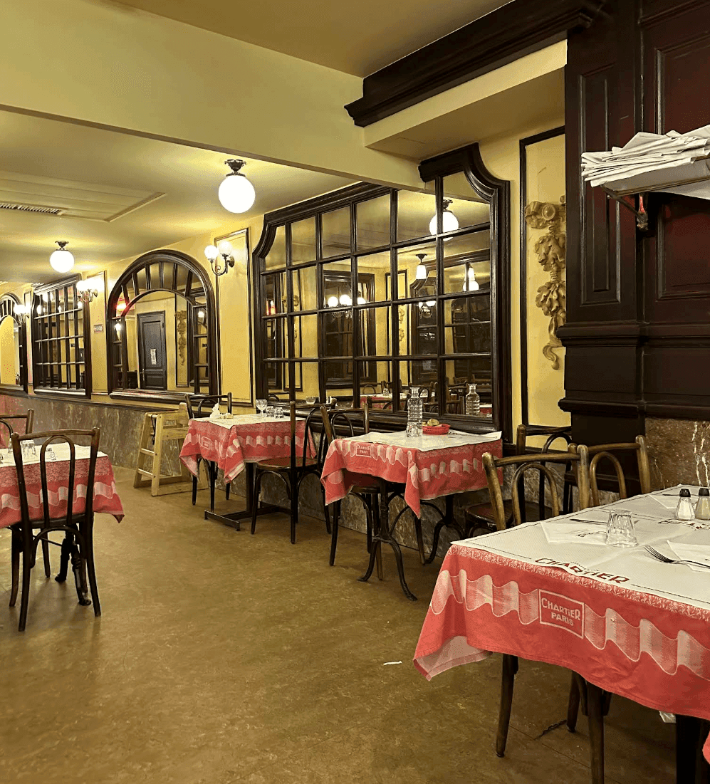 Bouillon Chartier Grands Boulevards, fondato nel 1896, è il ristorante originale e più antico della famiglia Bouillon Chartier a Parigi. Ha accolto ospiti per oltre 120 anni, rispettando il suo principio fondante di offrire un pasto di qualità a un prezzo modesto. Il menu propone antipasti tradizionali francesi a partire da 1 €, piatti principali a 7 € e dessert o gelati a partire da 2 €, garantendo un pasto completo per meno di 20 €.