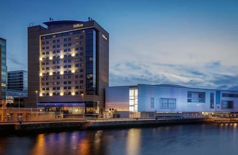 Scopri Hilton Belfast, una location eccezionale sulle rive del fiume Lagan, perfetta per i tuoi eventi aziendali. Vicino al Waterfront Hall, al mercato di St. George e al centro commerciale Victoria Square, questo hotel combina comfort moderno e accessibilità. Goditi le sue strutture, tra cui un ristorante con vista e un centro fitness aperto 24 ore su 24, oltre a eleganti spazi per riunioni perfettamente attrezzati per tutti i tuoi seminari e conferenze.