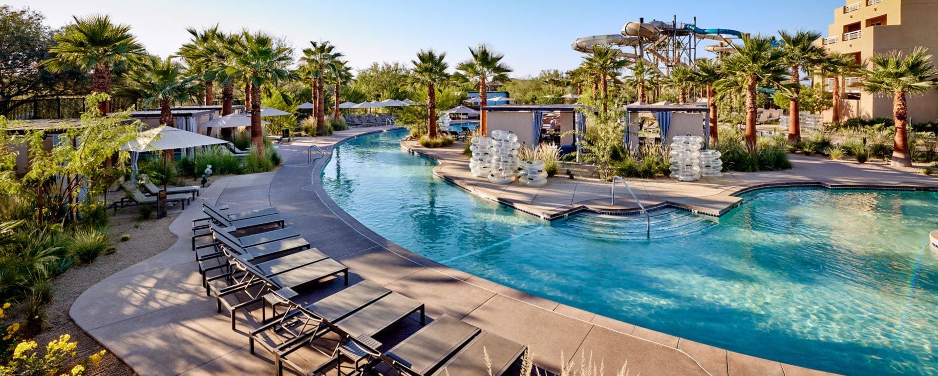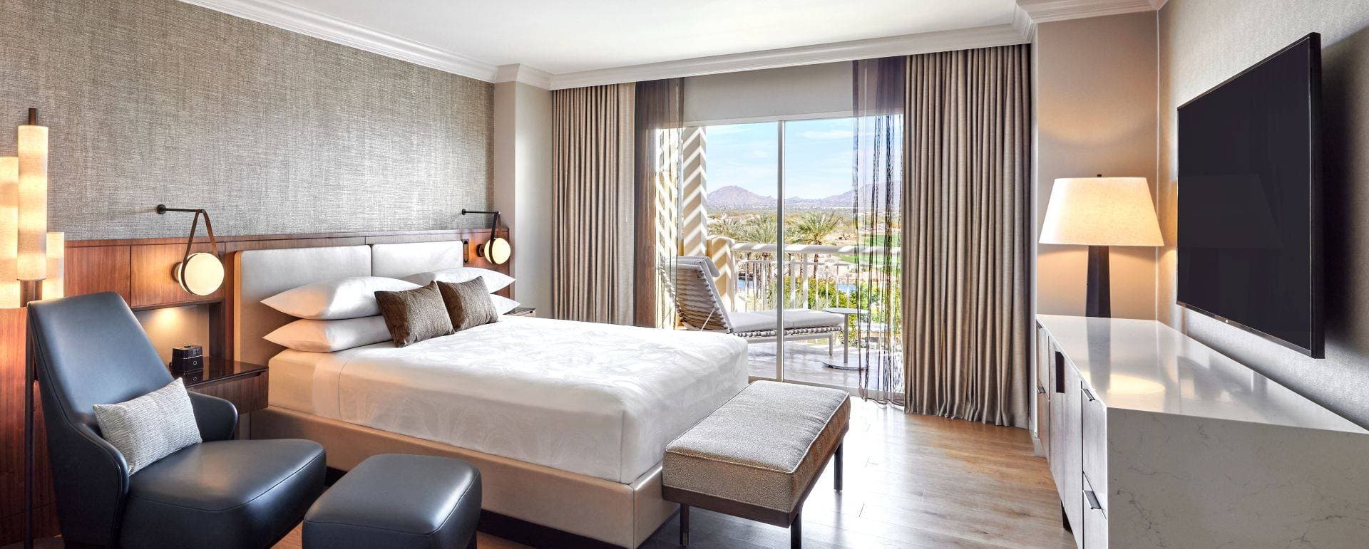 Genesteld in het hart van de Sonoran Desert, biedt deze gelegenheid een ideale setting voor zakelijke evenementen, waarbij comfort en toegankelijkheid worden gecombineerd. Gelegen op minder dan 30 kilometer van het centrum van Scottsdale, beschikt het over ruime, airconditioned kamers met schilderachtige uitzichten. Gasten kunnen genieten van verschillende eetgelegenheden met meerdere restaurants op de locatie, evenals een café voor koffieliefhebbers. Gratis Wi-Fi is beschikbaar in openbare ruimtes, zodat professionals verbonden kunnen blijven. Met vijf zwembaden, waarvan sommige met glijbanen, is deze locatie perfect voor het combineren van ontspanning en recreatie. Voor degenen die op zoek zijn naar welzijn, zijn er een volledig uitgerust spa en fitnesscentrum beschikbaar. Golfliefhebbers zullen ook de twee golfbanen op de locatie waarderen, die een prachtig uitzicht op de woestijn bieden. In de buurt zijn er verschillende recreatieve activiteiten zoals fietsen en wandelen, die uitnodigen tot verkenning van de prachtige omliggende landschappen. Deze locatie vertegenwoordigt een perfecte combinatie van comfort, avontuur en ontspanning, waardoor het ideaal is voor seminars en zakelijke retraites.