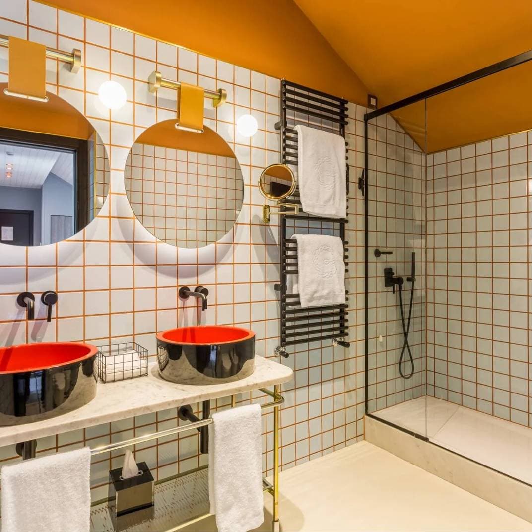 Room Mate Giulia is een levendig, design-georiënteerd hotel, gelegen op een steenworp afstand van het iconische Piazza Duomo in Milaan. De interieurs, vervaardigd door Patricia Urquiola, combineren gedurfde Sixties Milanese stijl met moderne accenten, met roze marmer, gebogen meubels en een warme palet van mosgroen, bloesem en terracotta. Elke kamer is uniek ingericht met een rasterpatroon op het plafond, achthoekige spiegels en kunstwerken van lokale kunstenaars, terwijl kleurrijke mozaïektegels in de badkamers een speelse flair toevoegen. Met zijn levendige sfeer en centrale locatie biedt dit hotel een stijlvolle en onvergetelijke ervaring in Milaan.